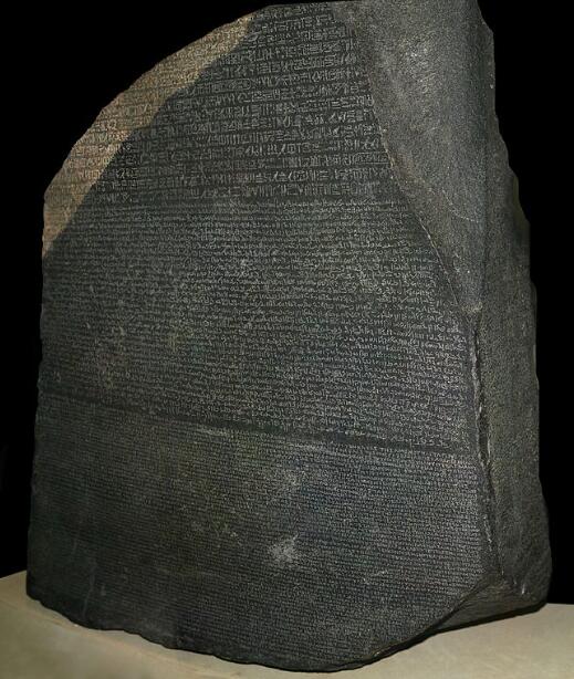 罗塞塔石碑,是一块制作于公元前196年的花岗闪长岩石碑,高44英寸、宽30英寸,它是大英博物馆最为令人瞩目的藏品。
