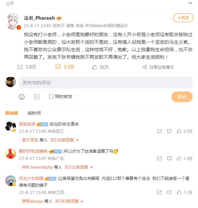 近日,哈圈出现了一个大师,法老宣布在发完下张专辑我就不再发歌不再演出了,直接退圈,而退圈的原因则是因为紫菜蛋花兔,目前可以确认的是紫菜蛋花兔和法老正在谈恋爱,被拍到手牵手的画面了,然后法老是异性恋所以他的男男cpf不愿意了,也就是法老和小精灵的cp粉,去扒他的女朋友,结果扒出来他女朋友512那天在朋友圈表达对禁娱的不满,还扒出来这个法老打了小精灵..