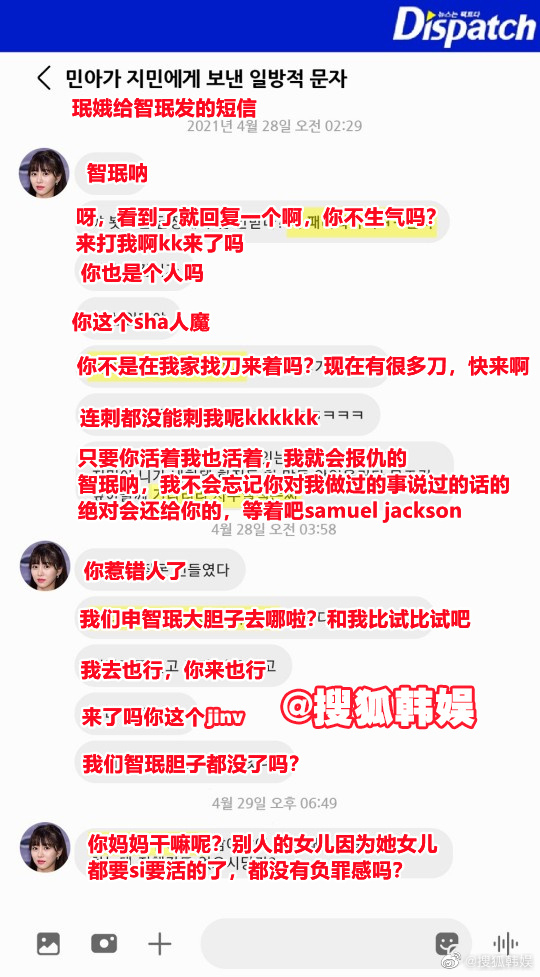 ![]() ![]() ![]() ![]() ![]() ![]() ![]() 按聊天记录说,我也还是觉得智珉没错,比起说权被霸凌,更觉得她像团队里经常会遇到的做不好还理直气壮的人。成员赶不上进度,组长为了团队表现和成绩理所当然觉得应该对这个成员多花心思多建议,但这个成员只觉得自己是在挨骂很委屈,还希望每个人都来哄她。 而后,申智珉退圈。权珉娥从2020年11月开始到2021年5月为止,给申智珉发送短信,内容如图 ![]() 经纪人们公布的关于权珉娥的聊天记录,权珉娥周一凌晨发信息催经纪人给她妈妈预约牙科治疗。经纪人们在群聊中抱怨权珉娥太过敏感,让人很累。 ![]() ![]() |