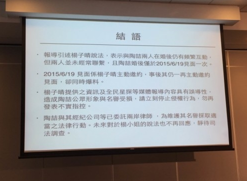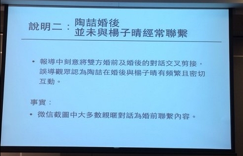 杨子晴表示2010年在演唱会庆功宴上结识陶喆,后来陶喆展开猛烈追求,陶喆婚礼前夕还对杨子晴宣示主权,主动要求亲热。陶喆婚后仍对她示好,让杨子晴深感被欺骗,于是对陶喆的电话讯息置之不理,但最后她仍对他的猛烈追求招架不住,两人旧情复燃。而陶喆在6月29日下午,透过经纪人发出声明,“本人陶喆自与Penny(江佩蓉)女士相识、结婚至今,从未刻意隐瞒与任何一位友人的交往,婚前我与杨子晴的交往也不例外。杨子晴日前的新闻也是Penny转发给我才得知。本人婚后与杨子晴虽无经常联系但彼此并无交恶。Penny对这一切也都知情。对于今日报载内容造成双方亲友及媒体朋友的困扰,本人深感抱歉。仅以此简短声明表示,我们很好,谢谢大家关心。也希望杨子晴小姐一切顺利。 可能是自己的感情史比较复杂,在开记者发布会的时候,为了能解释明白,陶喆做了一个PPT如下(2015年制作): ![]() 他坦承婚后的确和杨子晴有过一段情,“婚后的确有出轨行为,很羞愧,我做错了”两人是在2010年认识,2015年6月8日杨邀约见面,19日在成都见过一面,他说:“这次见面造成出轨的主因,我不会逃避无论事情怎么发生,我都做错了,非常抱歉羞愧。” ![]() ![]() ![]() 那么,出轨后的陶喆怎么样了呢?我们看时隔8年之后,陶喆在2023年8月21日去新浪扫楼了,这是准备要复出的节奏。 ![]() |