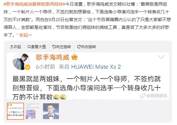 因为李玟生前的一段录音,《中国好声音》节目被万众声讨,这声讨队伍中也不乏一些参加过中国好声音的歌手,比如歌手海鸣威就发微博表示:“最黑就是两姐妹,一个制片人一个导师,不签约就别想晋级,下面选角小导演问选手一个转身收几十万的不计其数。”很明显,如果海鸣威说的是真的,那么中国好声音节目组确实太黑暗了。
