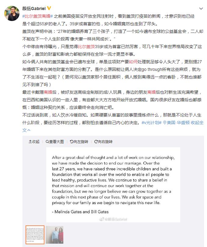 ![]() 当然,对于两个人的离婚也有网友分析,作为“老夫老妻”,婚姻走了27年,现在再说因为家庭而离婚确实让人不可思议,更多的原因极有可能是为了避税等问题。下面是网友的分析: ![]() |