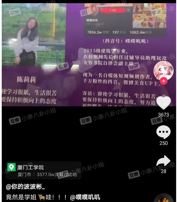 噗噗叽叽本名陈莉莉,1996年10月1日出生,2015级厦门工学院建筑学专业,毕业后在家为林先生做饭,现在是一位全职主妇型的自媒体短视频主播,目前全网总粉丝已经超过1500万。