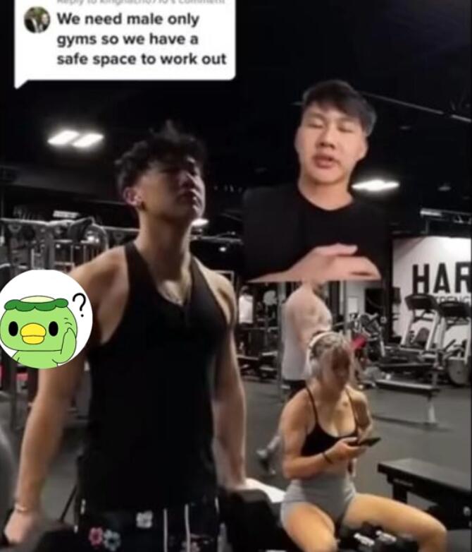 为什么会这样的呢?原来之前有很多女性在健身房锻炼,喜欢拿手机拍摄自己,当有男人路过镜头时,眼神看向她们,就会被网曝说是BT,并贴上标签“女性不应当被凝视”。