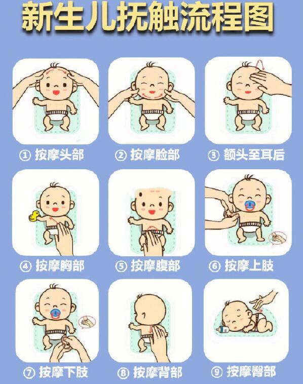 首先我们倒上抚触油,然后双手搓热,开始做面部抚触: 眉毛弯弯像月牙,额头宽宽好当官 小脸蛋呀,胖嘟嘟,宝宝爱笑不爱哭 大耳朵像元宝,天天锻炼听力好 大脑瓜啊,真聪明,长大要当博士后 然后我们做宝宝的小胳膊来,捏一捏,捏一捏,揉一揉,揉一揉,搓一搓,搓一搓,小手指12345,另一侧做相同的动作。 我们开始做腹部,小肚子呀,软绵绵,宝宝吃的香又甜,从肋下到肩上,宝宝呼吸好顺畅 再来宝宝的小腿捏一捏,捏一捏,揉一揉,揉一揉,搓一搓,搓一搓,宝宝是不是舒服了? 小脚丫来按一按,12345另一侧也做相同的动作。 背部抚触也有口诀,妈妈给你顺顺背,宝宝干啥都不累,四指并拢打圈圈,从上到下走中间,拇指从脊椎向两边推推,八字交叉揉一揉,宝宝干啥都不愁,捏捏脊,排排食,臀部揉揉长肉肉,宝宝你真棒! ![]() 宝妈们学会了吗? |