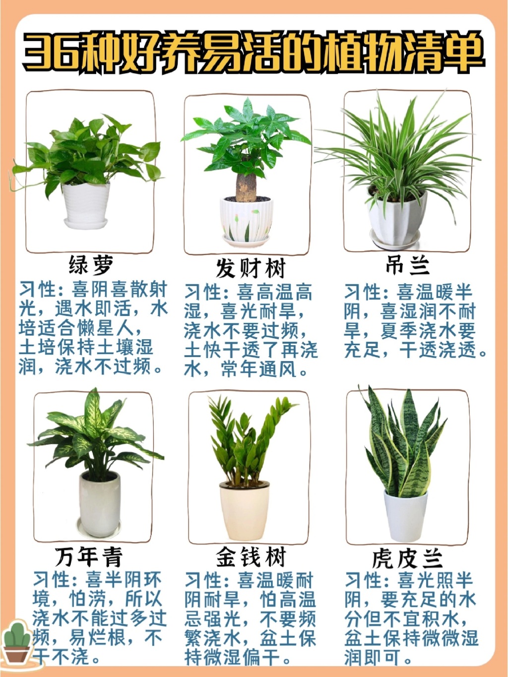 室内有植物,会让人心情变好,整个房间看起来也会绿意盎然,充满生机,改善家庭的运势和气场;不过很多植物不好养,养死了很晦气,今天给大家分享36种室内好养活的植物,大家可以尝试种一下试试。