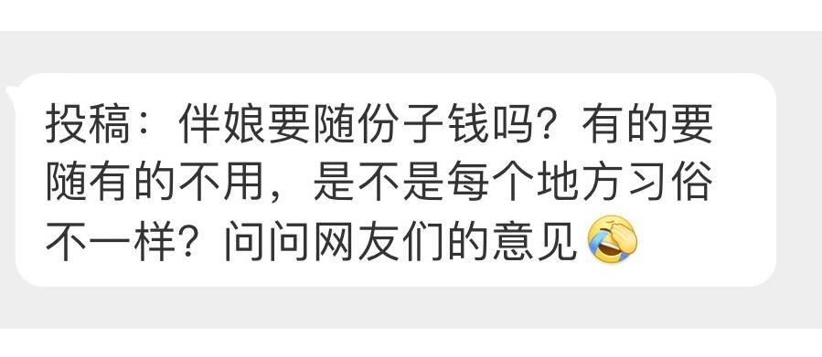 “我觉得份子钱代表对新人的祝福吧,我结婚的时候给伴娘准备了红包和伴手礼,下午还点了奶茶,这是我对伴娘的谢意,但是伴娘给的红包我也收了,这是她们对我的祝福,两者不冲突。”