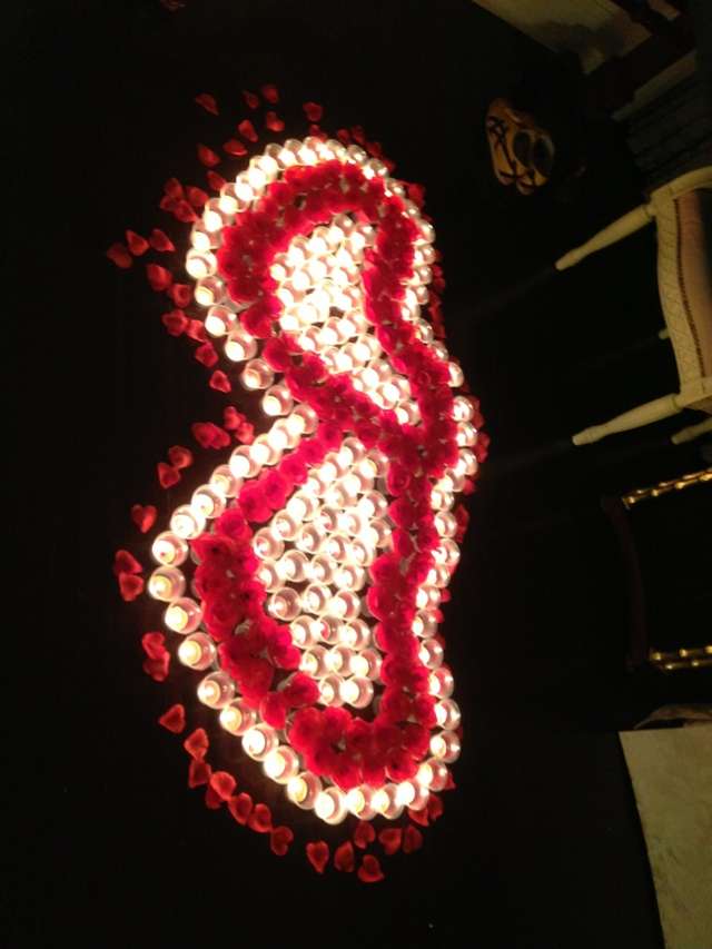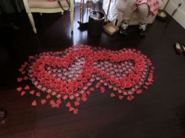 4.可以在当天,他没有回家之前,把家里设计一下,买些闪灯,灯光要艳的那种,然后把你家里的大灯给取掉,让他晚上回家开灯,灯不亮,然后,你来开闪灯,两个人再吃顿晚餐,就可以了