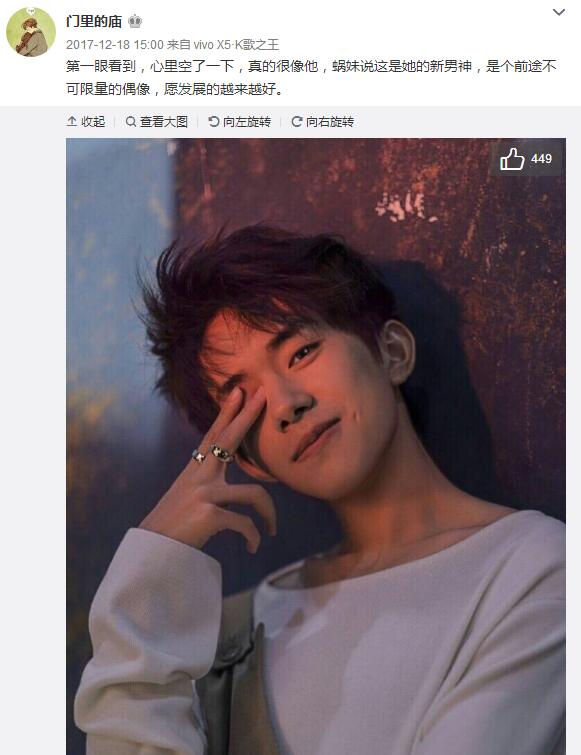 门里的庙的微博里只关注了一个人,那就是TFBOYS-易烊千玺 ,说起原因来,是因为这位门先生长的跟他很像。身高进1米9的门先生想来也是个有身高有颜值又专情的小帅哥。