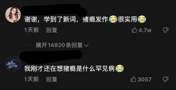 然后网友们就觉得猪瘾发作这个词太适合描述自己了,我不饿、也没犯花痴,我只是“猪瘾发作”