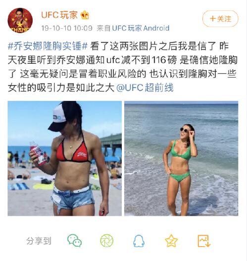 UFC乔安娜隆胸后照片,曾被张伟丽打到整容