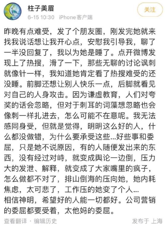 对于角色争议,田曦薇的好友出来替她回应这一系列爆料说:“我无法感同身受,但就是觉得明明这么好的人,什么都没做错,为什么要承受这些。公司营销的委屈都要受着,田曦薇不应该受到一些指责…...解释与不解释都不行。”