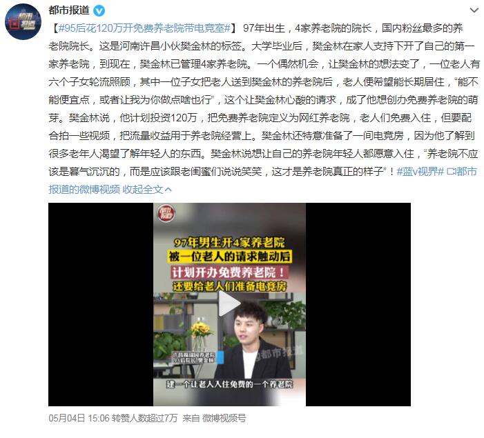这位奶奶已经八十多岁了,退休前是一位语文老师,那些视频都是她在养老院里拍的,拍摄者是她的孙子,同时也是养老院的院长。