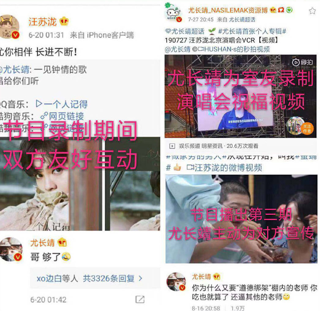 节目录制期间,尤长靖多次主动与汪苏泷进行友好互动(打脸前辈粉丝在多个平台上声称尤长靖团队自始至终不愿意配合宣传的谣言)