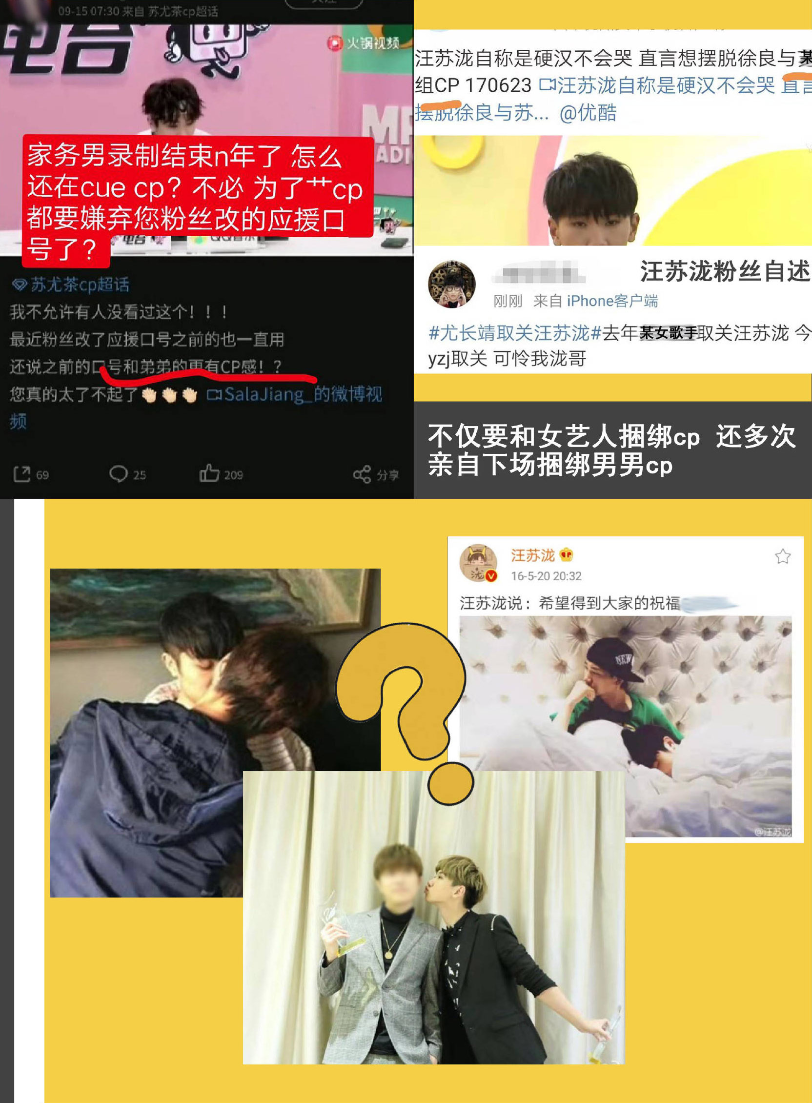1、汪苏泷【本人】在节目外刻意捆绑西皮而我们不难发现,汪苏泷疑似因捆绑cp而遭到其他艺人取关早有先例。