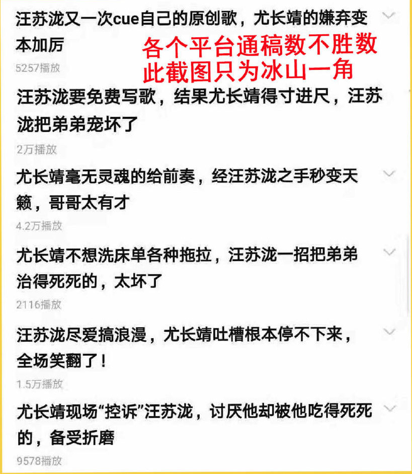以上可以看出汪苏泷团队在节目外不断捆绑利用一个出道仅一年多、无任何后台背景、十分好拿捏的小新人进行营销,且其手段方法毫无尊重可言。节目cp效果粉丝本身不排斥讨论,节目的话题热度粉丝也是可以配合节目组工作人员去积极加热的,但是事实上是汪苏泷团队和节目组工作人员都在没有征得尤长靖团队的同意下(尤长靖已在节目中提过自己的底线就在于此)前者在节目外,在无关节目内容的情况下擅自大肆进行捆绑炒作后者则从剪辑到后续加热上做出各种让尤长靖粉丝痛心的操作。取关具体理由如何除当事人外妄加猜测或者评理其实根本没有意义。但仅以上举证(其实还有更多已经省去)足以侧面说明:明知会承受舆论压力的取关一举或者说这个在节目录制后发生的决定终止合作的迹象,不是事出无因,是新人宁愿承受流言也要做出的无奈之举。