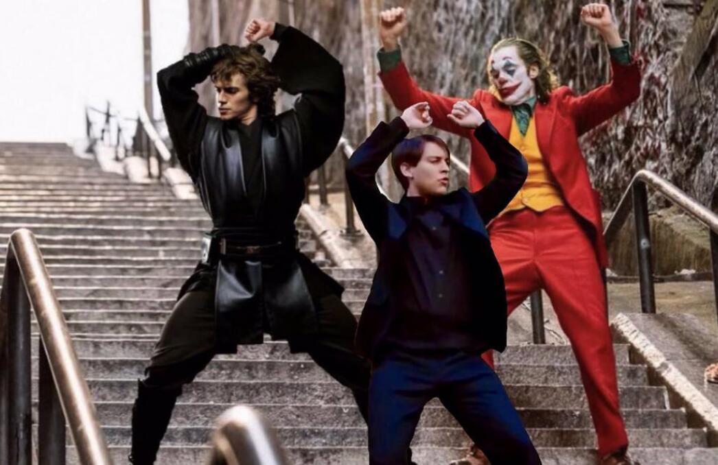 别人黑化后都是去毁灭世界,而小蜘蛛这边则是要求老板转正涨工资,折扣店买衣服,大街上跳骚舞。。而这些名场面被各路网友拿去剪辑恶搞,让托比马奎尔穿行在各种世界中,宛如真正的大boss 一般,又骚又贱,十分魔性。