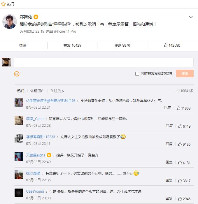 ![]() 如今已经61岁的郑智化,这些年安然的享受着退休的生活,时不时的还会抨击下台湾省的现状,比如在2021年7月2日,他还发表了一篇爱国言论的博文他说:“这里的人不讲英文但帮美国看门;这里的人不讲日文但认日本祖宗;这里的人讲中文写中文但视中国为敌人。” 在2022年7月,《乘风破浪》中王心凌组表演的《星星点灯》引发热议,歌词“是肮脏的一片天,星星在文明的天空里再也看不见”变成“是晴朗的一片天,总是看得见”。3日晚,原唱@郑智化 回应表示“震惊、愤怒和遗憾”。 ![]() |