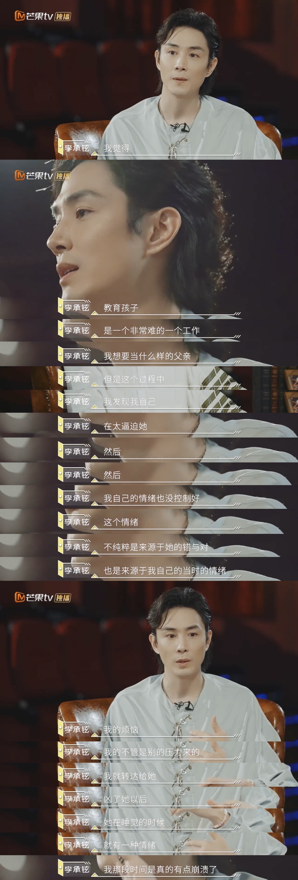 易立竞曾经采访过李承铉,两个人有一段对话,应该是我看到的男演员里第一个讨论全职奶爸的,看到了李承铉对妻子戚薇的考虑和尊重。