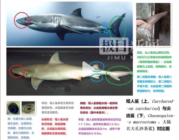 关于大白鲨与尖齿鲨的区别,请看下图: