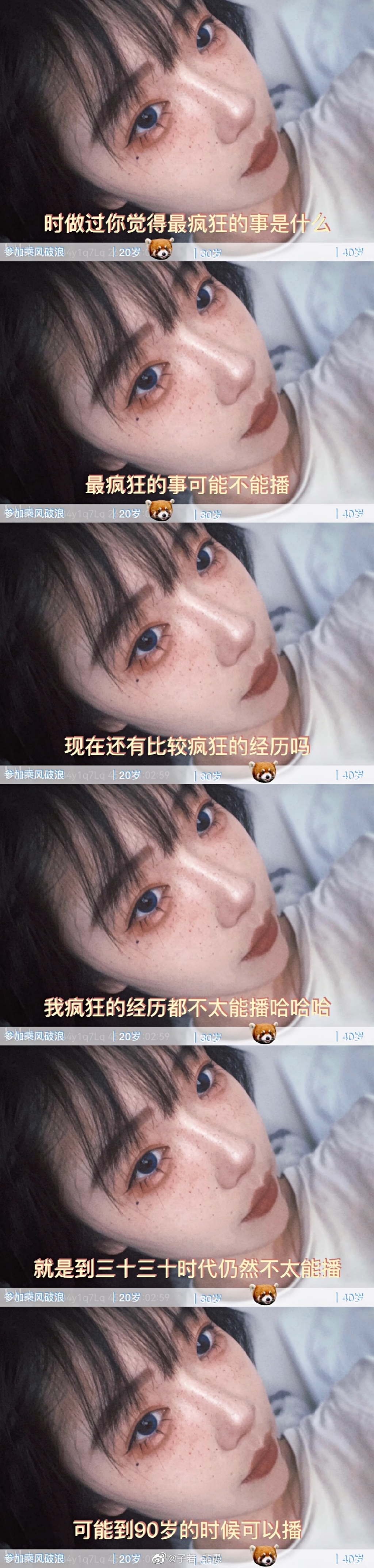 主持人:那30岁的时候就是现在最疯狂的经历是什么?刘恋:我疯狂的经历都不太能播哈哈哈,就是到三十三十时代仍然不太能播,可能到90岁的时候可以播。