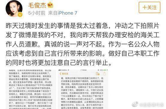 ![]() 除了这一次的风波,毛俊杰在2018年11月30日还经历过一次大闹机场、深圳海关的事件。 当时毛俊杰带有多个大件行李的车辆引起了海关的注意,成为了被抽检的对象,而当时毛俊杰已经经过旅客通道过境,留下司机在现场,司机拿出行李后,无法打开,所以喊来了毛俊杰。 深圳海关表示,从发现车辆需要被查验到查完没问题放行总共花费了38分钟,实际查验行李的过程仅仅9分钟。而毛俊杰则声称现场官员拖延了1个多小时。 在接受查验的过程中,毛俊杰一直催促官员快点查验,还边催边拍照,官员当时告知毛俊杰禁止拍照时,毛俊杰还发脾气。 这就是毛俊杰大闹机场深圳海关事件的由来。 ![]() 下面是毛俊杰当初利用自己的影响力在网络上编造事实的微博全文,毛俊杰提到:“官员把所有行李全部打开,层层翻看,就连用过的旧鞋子和包包都要去查验”,这一点深圳海关方面也给出了回应:“凡事神色匆匆,着急通关的旅客,都会成为重点核查的对象。”这个解释很好理解,很多携带违规物品的游客,在接受检查的时候都会出现神色慌张的问题,毛俊杰太着急了,所以成了被重点检查的对象。 ![]() 事后毛俊杰迅速道歉 ![]() |