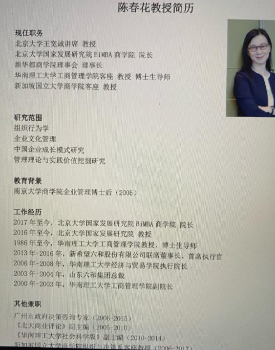 ![]() 早前关于陈春花的学历是这么介绍的: