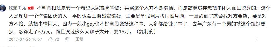 其实这个人并不是滑稽,而是故意这样想把事闹大而且脱身的。这个人有可能是深圳一个诈骗团伙的人。平时也会上街碰瓷骗钱、主要是拿假照片找同性月抛。一旦约到了就会找对方要钱,要是对方不给,就把事情闹大,因为一般小gay也不好意思张扬这种事,大多都给钱了事了。去年广东有一个男的被这个组织要挟,敲诈走了5万元。而且没过多久又狮子大开口要15万。