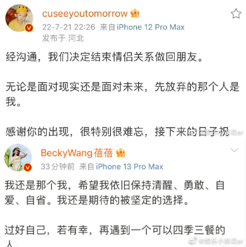 ▪️同时前几天他们在北京一起的时候 花花还回复网友说他俩好着呢(说明当时也不知情)