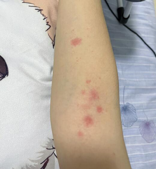 首先被跳蚤咬处出现大小不等,高出皮肤、暗红色的斑疹,皮肤过敏者会面积更大中心有明显红点及跳蚤叮咬的口器印迹,奇痒无比,越抓越红,持续数天。
