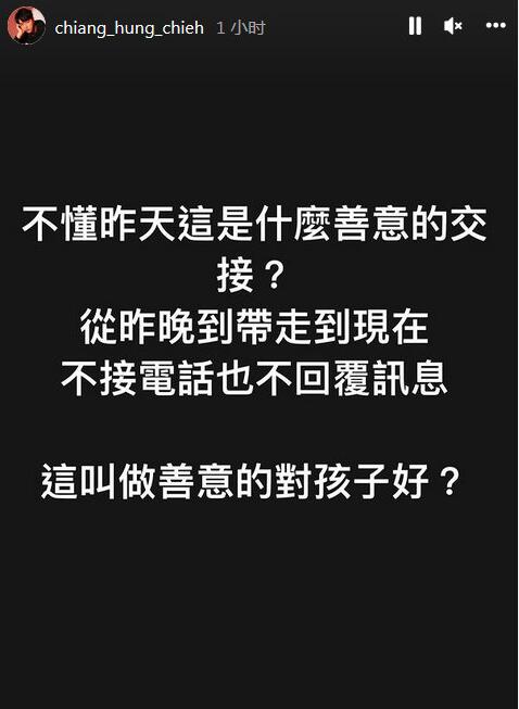福原爱近日返台,昨日跟江宏杰相约见面,双方同意由福原爱带走家人,殊不知带走家人后完全失联,至今江宏杰仍找不到人,因此才透过IG喊话:“不懂昨天这是什么善意的交接?从昨晚到带走到现在,不接电话也不回复讯息。”并气呛:“这叫做善意的好?”