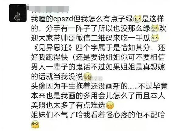 今天疑似是这位医生前女友,使用微博账号@不想说话土-_- ,发文请大家吃全瓜,讲述她与徐嘉余的恋爱过程,及后面的变心劈腿过程,并曝光两人的聊天记录。