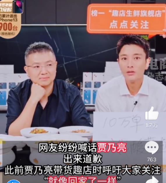 7.17 贾乃亮、傅首尔出现在直播间,助力产品售卖,同时贾乃亮曾说在趣店直播间像回家一样。