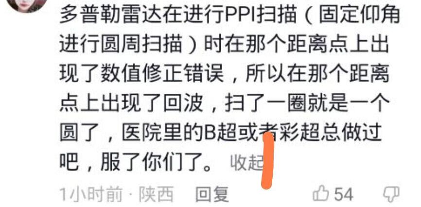 先说那个圆形的气象图,已经专业人士去解释了他的形成原因,一则是一个雷暴超级单体,二则是扫描方式的问题。