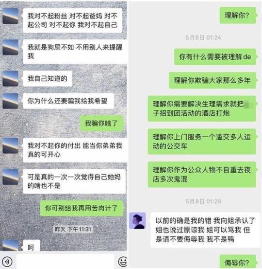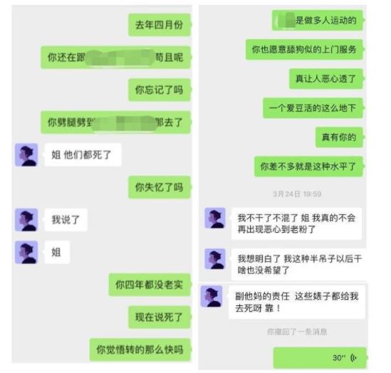 ![]() 被爆料之后,丁泽仁很快联系这位站姐处理掉负面绯闻 ![]() 站姐出于保护丁泽仁的立场,感觉谈恋爱这件事不应该彻底毁掉丁泽仁的前程,于是想尽办法把相关的负面新闻给删掉了。该站姐希望丁泽仁能够给粉丝们针对此事道歉,但是丁泽仁表示经纪公司都已经否认这件事了(跟粉丝恋爱的事),如果此时自己再出去道歉就是“自己锤自己”,等于得罪公司,所以拒绝不道歉,甚至还以跳楼威胁站姐。 ![]() 但是令这位站姐伤心的是,丁泽仁欺骗了她,在恋爱期间不仅没有收敛,还出轨其他女性,甚至在粉丝来看丁泽仁的时候,他都为了解决自己的生理需求,跟女人在酒店YP。 ![]() 于是这位站姐多次以爆料丁泽仁的恶性为借口,试图劝他迷途知返... ![]() 但是丁泽仁每次都仗着这位站姐对自己的爱,以割腕、跳楼为猥亵,阻止其爆料 ![]() ![]() 据不完全统计,该站姐为丁泽仁花费超过300万。 ![]() |