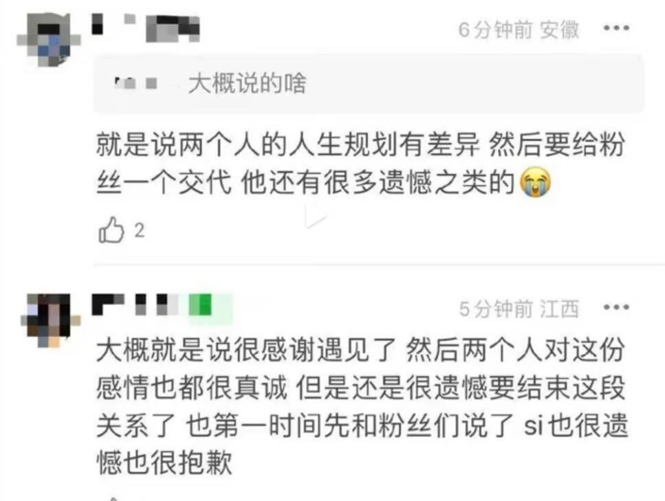 两人的分手原因疑似是因为职业规划和压力方面等等原因,选择分开的