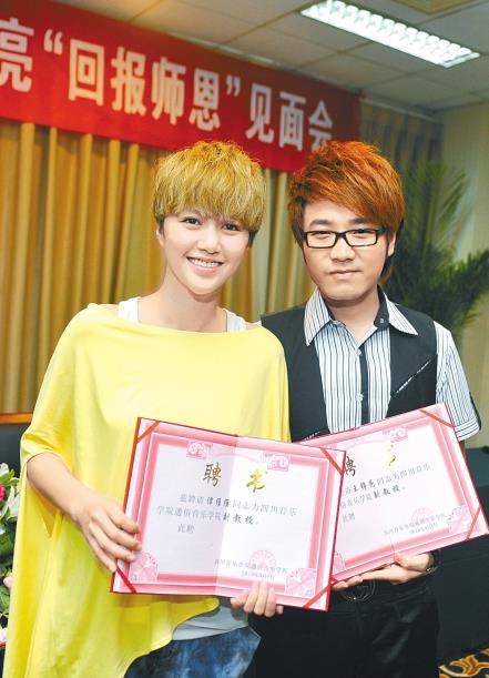 2010年9月2日,2006年超级女声全国第2名谭维维、2007年快乐男声全国10强王铮亮回蓉举行回报师恩见面会。谭维维、王铮亮还受聘为该院通俗音乐学院副教授,工资将由学校按照基本工资两千多加课时费共同组成。据了解,赵本山、成龙、周星驰、曾志伟、李湘、张娜拉等明星都曾有过大学“客座教授”的头衔,但选秀明星被聘为高校教授还尚属首次。