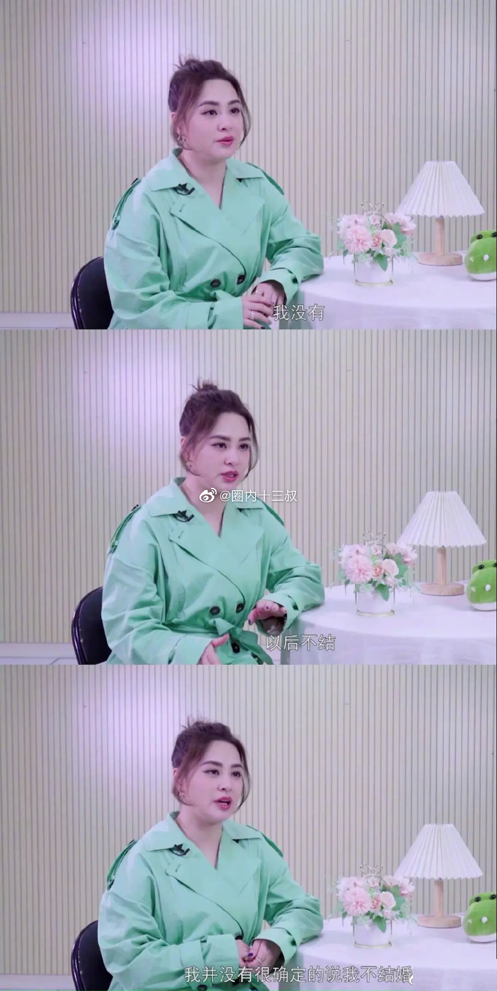 阿娇与赖弘国离婚后,也没有在谈恋爱了,采访中也回答到感觉自己不会再结婚了。对于阿娇说感觉自己不会再结婚了,很多营销号解读为:“阿娇不会再结婚了”...对比,在一档综艺节目上,阿娇回应“永不再婚”的事情。阿娇表示自己并没有明确地说以后不结婚,当时只是说“哎,我觉得我不会再结婚了”。其实只是一句玩笑,但是被放大了。阿娇表示“到现在这一刻我是不会,但我不知道以后会不会。”