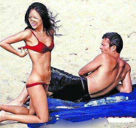 章子怡的早期沙滩照来自她和国外富豪男友艾维·尼沃,2006年章子怡经邓文迪介绍认识了以色列富豪艾维·尼沃,而艾维·尼沃是传媒大亨默多克长孙的教父,拥有多家大公司的股份,像是时代华纳集团、温斯坦公司等等,根据可靠的情报,艾维·尼沃的身家达到了47亿美元之多,接近300亿的资产,邓文迪本想介绍给富豪给自己的这位“好姐妹”,像自己一样嫁入豪门,到了2007年2月25日,奥斯卡派对在好莱坞举行,章子怡身着一身淡黄色透视蕾丝长裙现身,陪在她身旁的是外籍富豪男友艾维·尼沃,至此恋情正式曝光,两个人的恋情持续到2010年,据说艾维·尼沃甩了章子怡,有趣的是2017年尼沃染上艾滋病,章子怡幸运地逃过一劫。