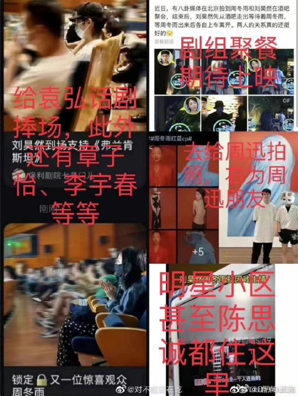 ![]() 对于这个巧合,有网友表示,这其实去年燃冬剧组长白山天池出外景罢了 ,看到美丽的景色大家都想拍一拍,很正常。 ![]() 关于周冬雨和刘昊然的恋情,其实很早在快手上有一个叫卓SIR的八卦博主就说两个人可能因戏生情,刘昊然曾经去周冬雨家呆了个小时,下面是网友分享的一些证据图。 关于两个人恋情的关键点,整理如下