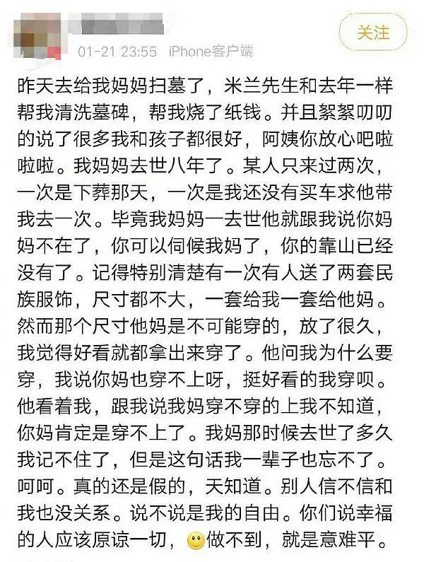 ![]() 姜广涛前妻的微博名字叫@肥兔仔仔仔,地址是:https://weibo.com/u/1747516040 她的微博头像不清楚是否是本人的照片,如果是的话,姜广涛的前妻照片如下: ![]() 对于姜广涛前妻的这些说法,有网友表示,姜广涛和前妻是在2016年中旬离婚的,离婚后1-2年的时间内,都相安无事,但是在18年末到19年初的时候,蒋劲夫家暴事件传出的那个时间点,其前妻开始通过各种渠道暗示前夫曾经家暴过自己,冷暴力她。并且在离婚后没两年,又重新结婚,孩子都周岁了,反观姜广涛离婚后一直单身了三年才跟现任妻子在一起,又过了一年才结婚。 还有网友从客观的角度分析其前妻曝光的几个小事:买矿泉水这个事儿,我觉得看场景吧。如果大家一起,就等你一个人买一瓶矿泉水(日本自来水是不是直饮的),是我我也会说:马上到酒店了,就别买了,还得等你。不差那一会儿了吧。大家觉得女方可怜也不过是因为她现在以委屈的语气发出来了而已,不过是失败婚姻中的不如意之一。他们离婚不可能是因为一方有问题。女方自己不经别人同意就穿朋友送婆婆的衣服不也挺奇葩么?怎么穷到没衣服穿了非得穿这件么?姜说话也挺过分。不过失败的婚姻也会叫人成长。至少现在看来姜和现任过得还算和谐。前任要是也能走出来,好好经营自己现在的生活就不会再在网上抱怨了。 ![]() |