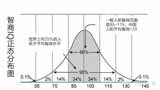 智商的测算幅度一般是从46到160,国际通行的办法是将智力超常的人的智商水平定在平均130左右。按这一分级标准,世界上大约一半人的智商在90-110之间,25%的人的智商低于这个水平,约5%的人达到125,达到130的人约为1%,而10万人中只有1个人的智商水平可以达到160。