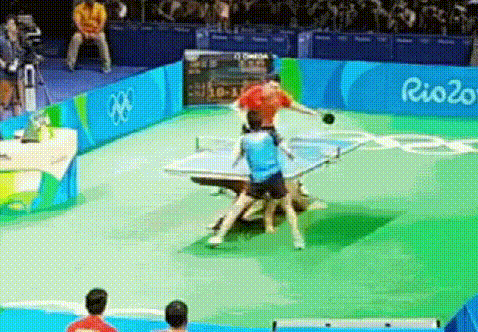 3.2016奥运团体拿了一分后没有挑衅中国队,只是自己激动庆祝,无奈广为流传那个角度看着是挑衅,附赠另一个角度