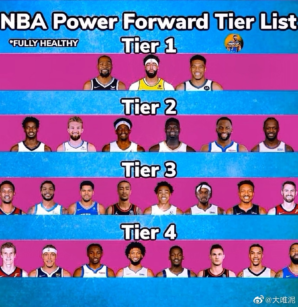 下面是NBA现役大前锋的排名梯队数据,字母哥、杜兰特等在第一档: ![]()