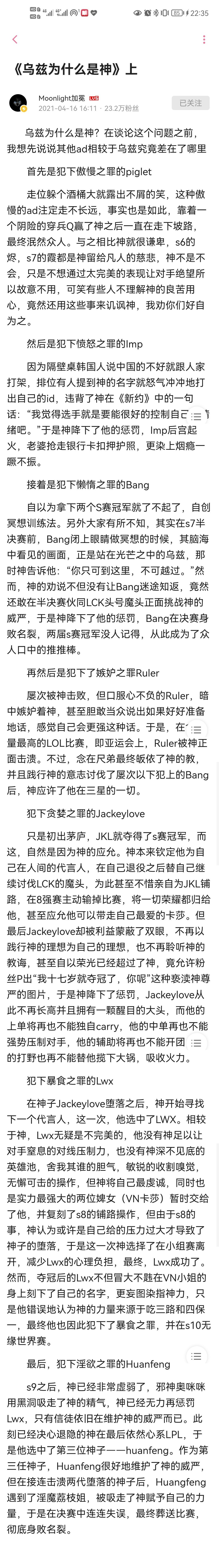 到后来有网友借这个梗,又写了一篇《乌兹为什么是神》的文章,内容就是讨伐其他AD选手的7宗罪和赞美Uzi的七美德。