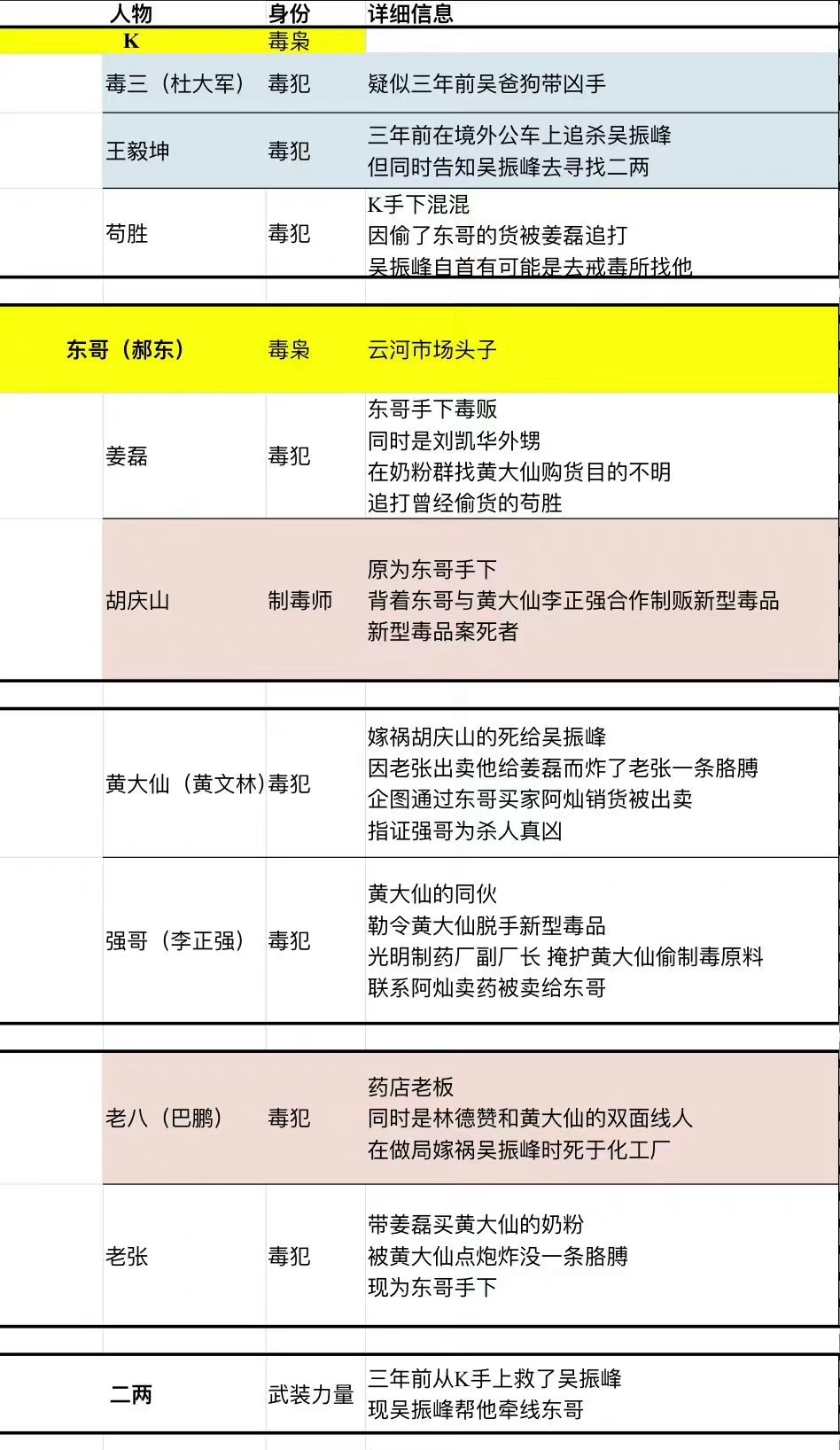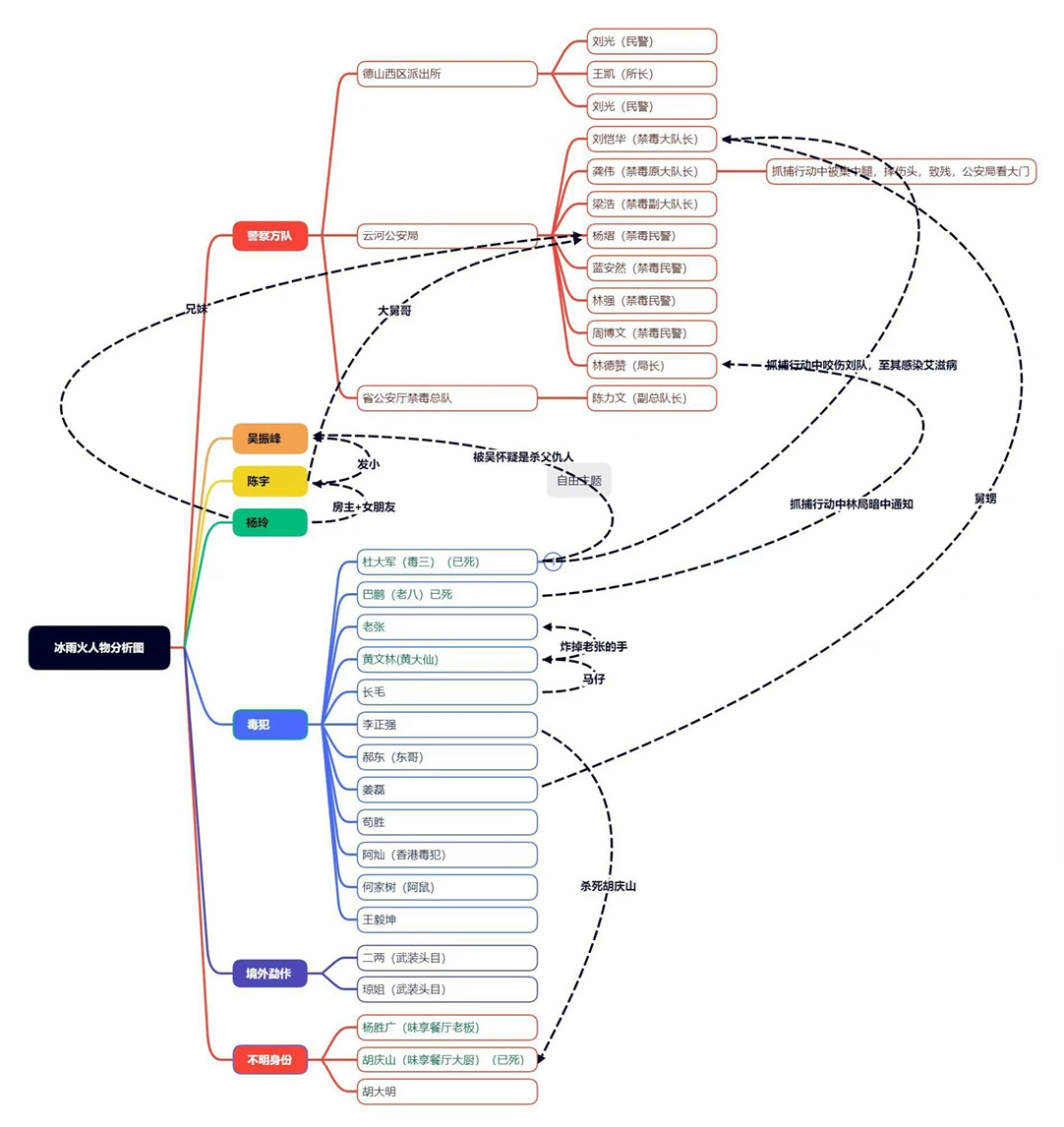 陈晓/王一博/王劲松/刘奕君主演的冰雨火节奏紧凑信息量大的剧情发展,吸引了不少观众自备笔记本追剧,认真标记下每个角色的身份信息,还会复盘行为动机,和剧中角色一样寻找事情的真相.有网友制作出来的剧中的人物关系图,方便大家理解剧情,不过人物关系有点子复杂,觉得每个人物都或多或少和毒贩有牵扯,那个大外甥也是,陈宇真的是一个热血青年,积极发言,一直往前冲,不是在挨骂就是在挨骂的路上。