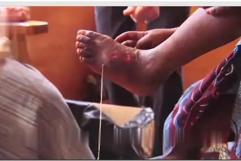 成虫寄生于人体深部结缔组织及皮下组织,可伸出体外,虫卵进入人体得经历漫长的一年发育成成虫,我们才能将它从脚底拔出来,想想就觉得恶心恐怖。主要临床表现为慢性皮肤溃疡。在热带地区,特别在西非、尼罗河谷、印度、巴基斯坦等地流行。感染率与气候干燥,水源缺乏,饮水习惯密切相关。流行区居民喜在池塘中洗澡、涉水、洗衣、漱口,因此有很多受感染的机会。有些地区习惯饮用生水,印度宗教习惯在斋戒沐浴时以生水洗口,也增加了感染机会。因此流行区居民取水及食用水的方式与本病流行有密切关系。