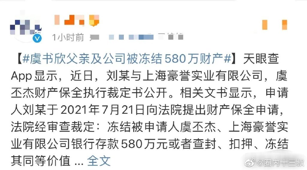 网传,刚出道的虞书欣就“带资进组”(为剧投资,让自己有更多的戏份),15岁就有超过4000万的资产,坐拥上海两套江景大平层,上海首富的女儿刘珈希是她的闺蜜,赵丽颖、黄晓明是她的邻居。当年参加青春有你2的时候,被眼尖的网友发现,她戴的项链是西太后中古珍珠项链,据说花钱都买不到。手里的包包是全球限量款的水晶包,买这种包需要22万人民币,还得是超级VIP身份,要不都没资格购买。再到后来参加青春有你3,她穿的礼服价值17万,全球仅有2件....她还说如果自己28岁还没红,那么只能回家去继承家产了...她爷爷是新余钢铁集团主席,爸爸是吉祥航空董事(虞丕杰),传说家中资产高达400亿。 ![]() 不过,对于虞书欣的富二代身份,也有网友质疑,因为在2022年1月11日,有网友通过某网站查询发现,其父亲关联的公司被冻结580万资产。