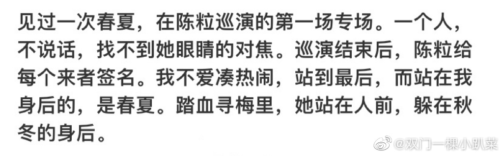 “陈粒春夏”是好朋友关系。