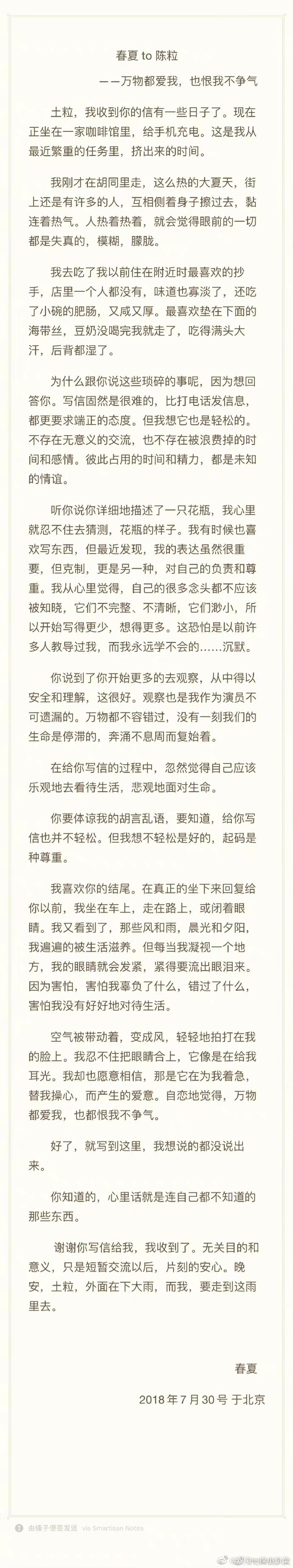 近日,“陈粒春夏”一起登上了热搜,而在18年时,春夏写给陈粒的回信“外面在下大雨,而我,要走进这雨里去” 在感叹二人文笔好的同时,她们的关系也仿佛也变得耐人寻味起来。